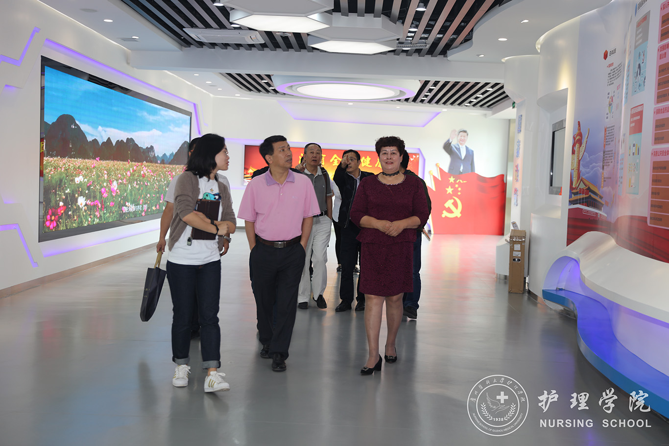 会后,胡刚一行先后参观了护理学技能实验室、贵州省大健康(产业)展示体验中心、生命科学馆、校史馆等地。计算机教育与信息技术中心主任刘涛、董事长办公室副主任江宣成、教学质量监控与评估办公室左临轩陪同参观。