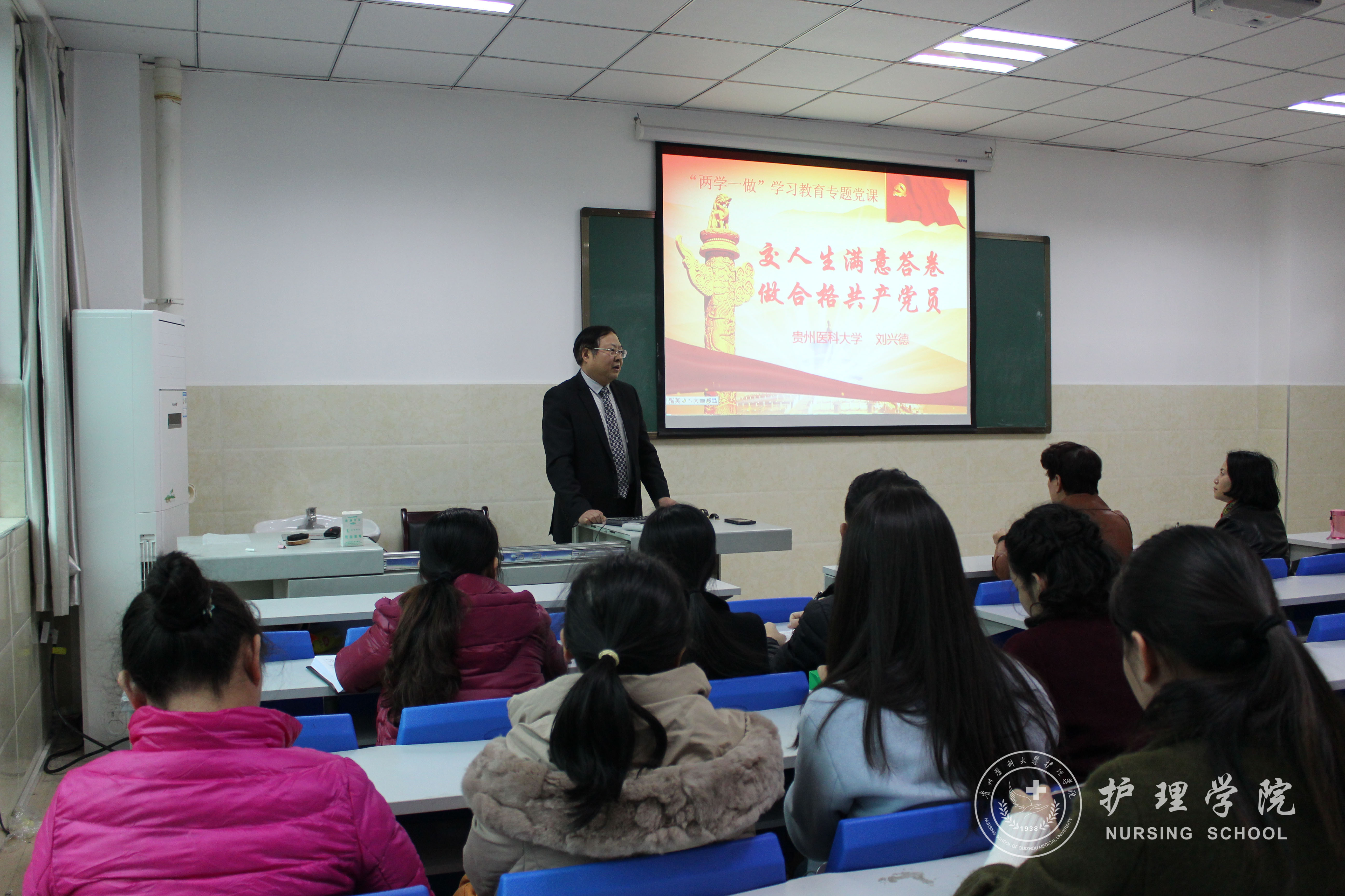 刘书记的党课从“为什么做”、“如何做”两方面阐述了做一名合格党员的重要性。其主题鲜明,重点突出,内容丰富,深入浅出,分析透彻,引经据典,幽默风趣,妙语连珠。刘书记在报告最后指出:“只要我们胸怀中国梦,不做空想家;在贵医大的发展壮大中干在实处,走在前列;在实际工作中勇于担当,我们就对得起合格共产党员的称号。”本次党课内容具有很强的理论性、针对性和指导性,使聆听者进一步明确了方向,坚定了信心,理清了思路。