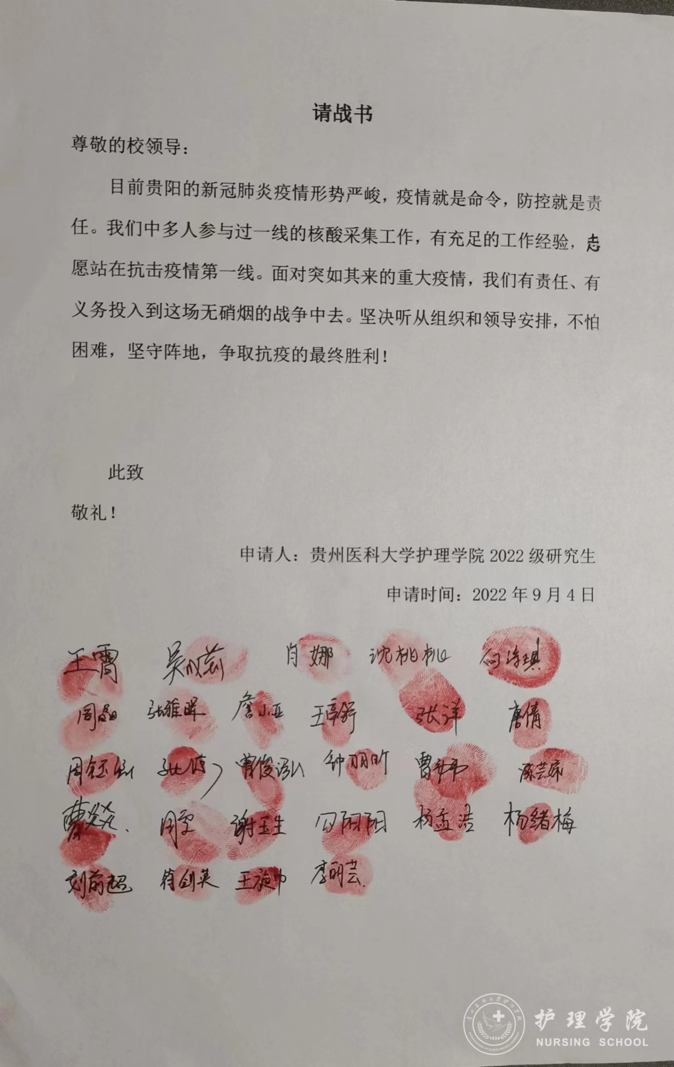 员工党员带头写下请战书