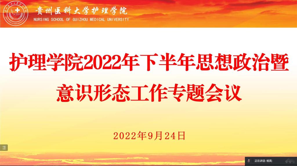 杨英总结会议并提出要求:一要统一思想,树立“大思政”理念,沿用好办法,改进老办法,探索新办法,不断增强思政工作的针对性、时代感和吸引力;二要压紧压实责任,要绷紧安全之弦,筑牢安全防线,持续做好舆情监测和处理、常态化疫情防控、实验室安全等重点工作;三要严格落实网络意识形态工作责任制,管好用好各种网络平台,传播好声音,传播正能量,为党的二十大胜利召开创造安全稳定环境。