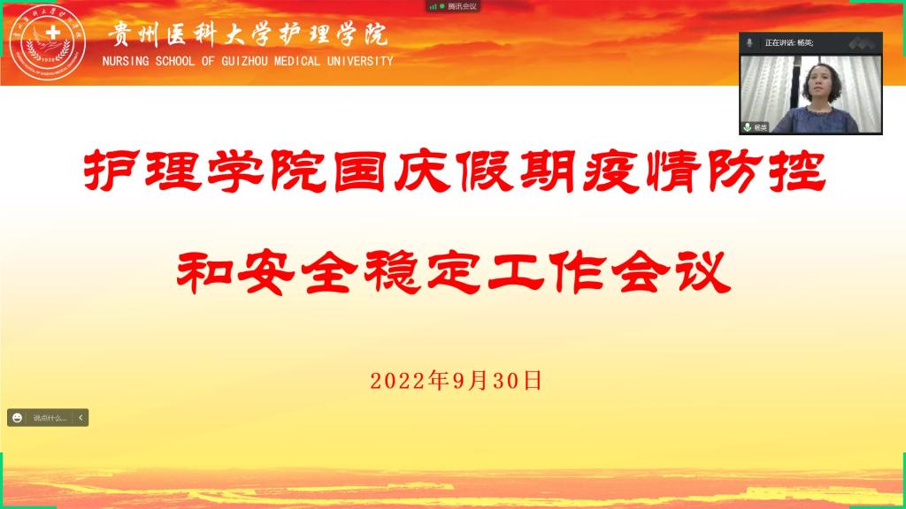 9月30日,公司召开国庆假期疫情防控和安全稳定工作线上会议,会议由公司党委书记杨英主持,全院教职工参会。