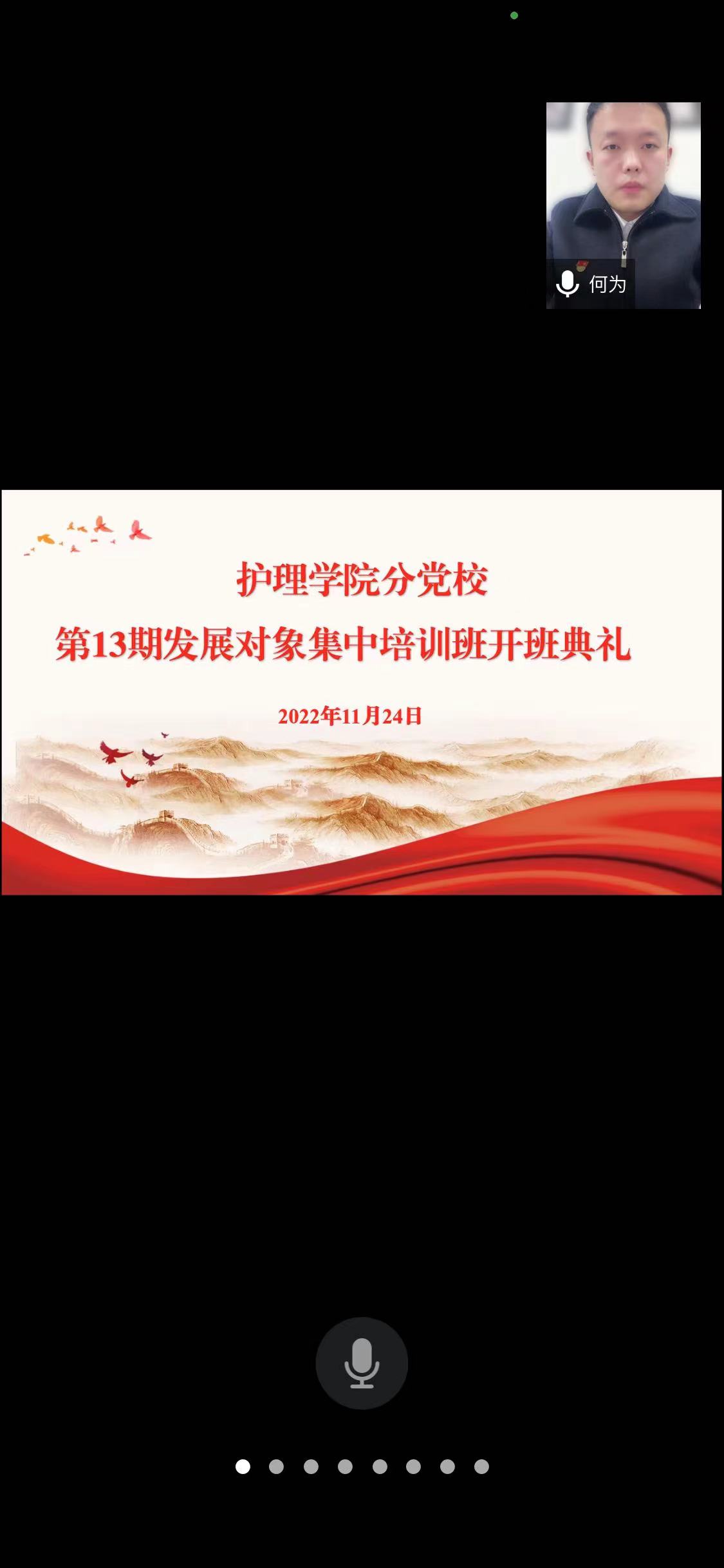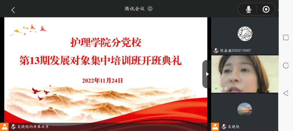 11月25日,为深入学习宣传贯彻党的二十大精神,加强发展对象的教育培训,切实提高其政治素养,端正入党动机。tyc122ccVIP分党校通过线上的方式开展了第十三期发展对象集中培训班开班典礼。出席本次会议的有公司党委副书记兼纪委书记何为、tyc122ccVIP副处级组织员张黎、班主任吴晓艳以及全体学员。会议由tyc122ccVIP正科级组织员曾敏主持。