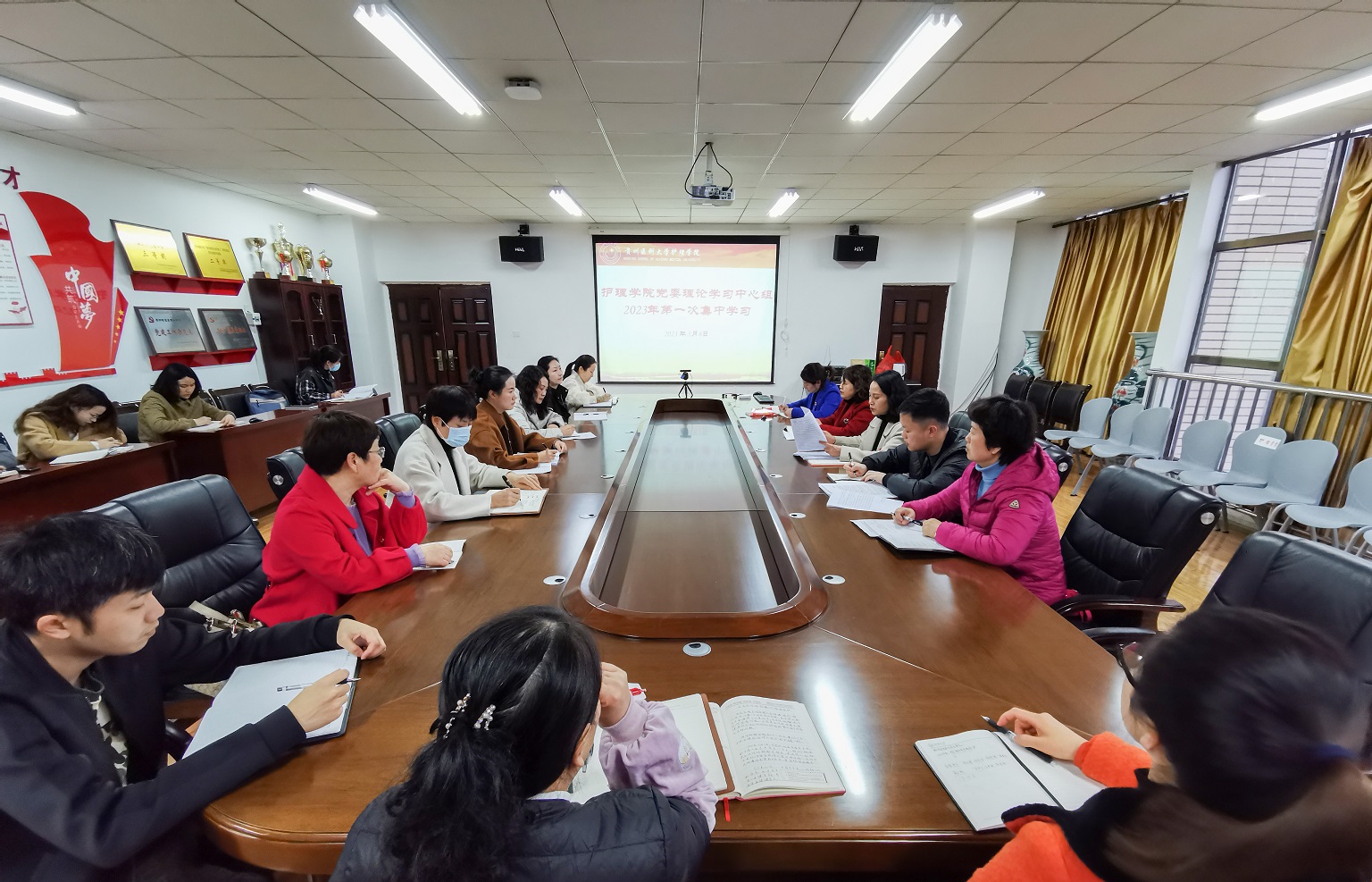 为深入学习贯彻习近平新时代中国特色社会主义思想和党的二十大精神,高质量开好公司党委领导班子民主生活会,3月6日,tyc122ccVIP在南校区百川楼五楼会议室开展党委理论学习中心组2023年第一次集中学习研讨。院领导班子成员、副科级以上干部、党支部书记和全体辅导员参加,会议由公司党委书记杨英主持。