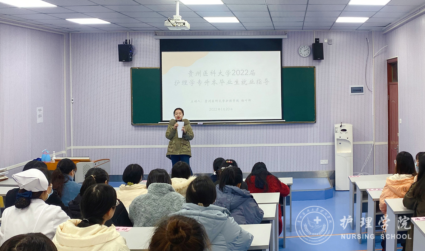 为进一步加强和做好毕业生就业指导工作,教育和引导毕业生正确认识当前的就业形势,树立正确的择业观、就业观,努力提高专升本毕业生的就业能力和就业质量。1月18日-21日,公司员工管理科副科长毕丽以及指导各教学点毕业生就业的校本部辅导员杨叶卿、刘妍、兰光倩、刘文壮分别在tyc122ccVIP二附院教学点、三附院教学点、铜仁市人民医院教学点以及附属白云医院教学点为2022届护理学专升本毕业生开展就业指导主题班会。