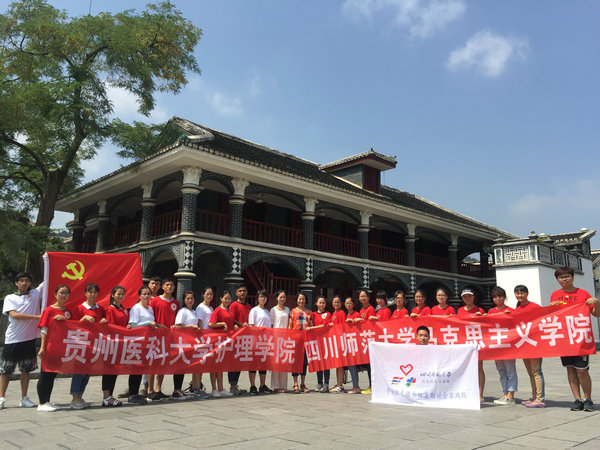 7月11日上午,服务队来到了红色革命的圣地——遵义会址,重温红军长征的光辉历史,遵义会议及转战贵州的重大史实。参观途中偶遇四川师范大学马克思主义公司社会实践服务队的师生,两院师生进行了亲切的交流并合影留念。在参观过程中,同学们充分意识到遵义会议是党在政治上开始走向成熟的重要标志,是中国革命从挫折走向胜利的生死攸关的伟大转折点,作为新时代的老员工,应传承和弘扬伟大的长征及会议精神,为实现中华民族伟大复兴的中国梦而努力奋斗。