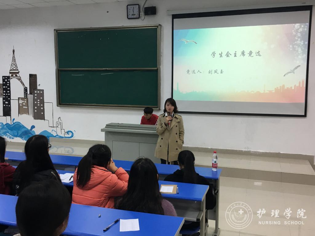 11月7日晚6:20,公司员工会在1404教室举行了一年一度的员工会换届选举大会。出席本次选举大会的有tyc122ccVIP分团委书记金晶及辅导员毕丽、李颖三位老师,部分员工会成员也参与其中。本次大会由14级助产班李双苹同学主持。
