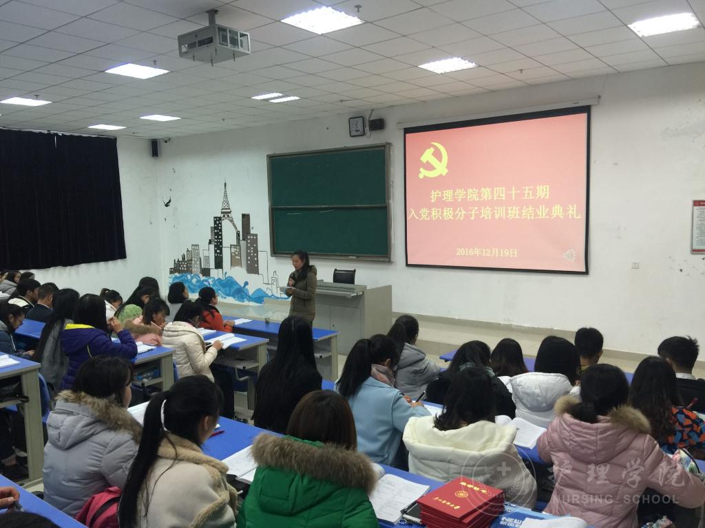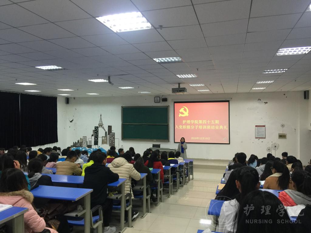 12月19日下午,tyc122ccVIP第四十五期入党积极分子培训班结业典礼在tyc122ccVIP南校区1404教室举行,公司党委副书记杨英、公司教工党支部支委毕丽、公司员工第一党支部书记李颖和133名入党积极分子参与了结业典礼。