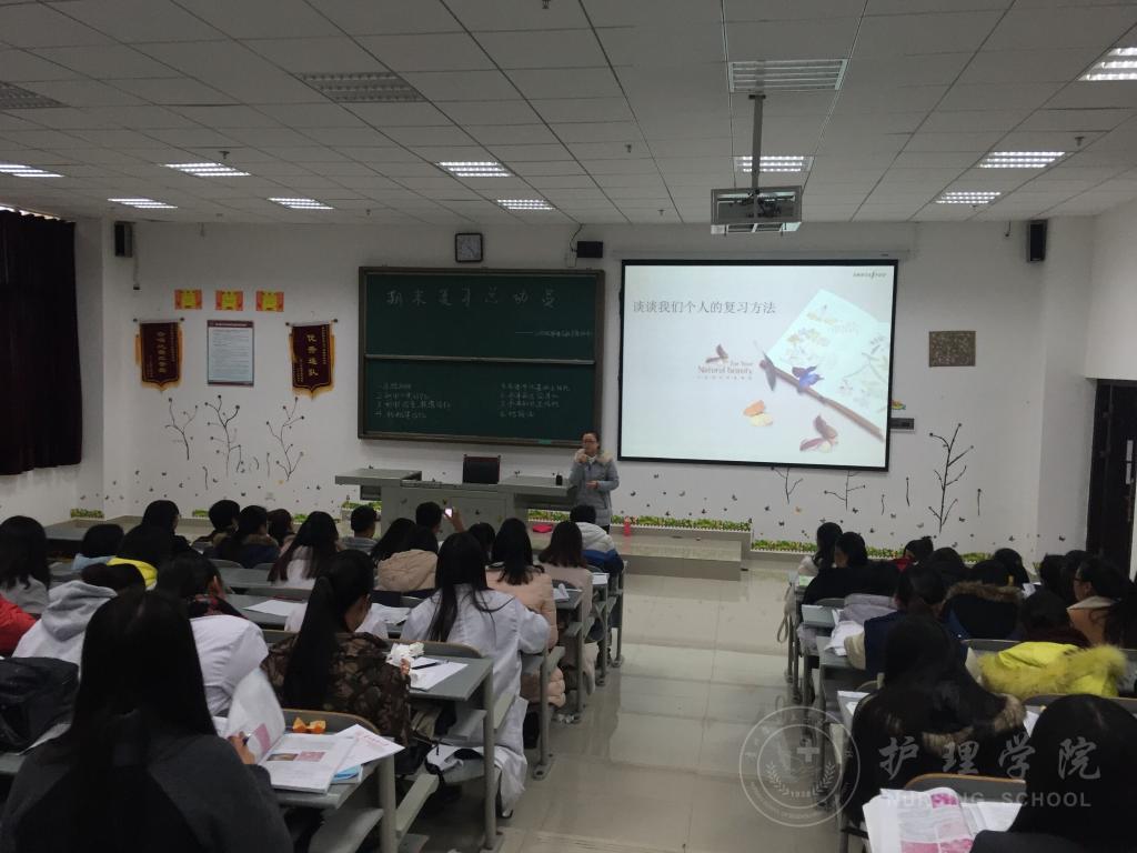 第一环节,在李红老师的主持下,许多同学结合自身学习分享了各自的复习方法。从各门课程做题的方法、如何记忆,到专业理论学习与实践操作相结合的全面分享,充分体现了同学们互帮互助、团结一致及共同进步的良好班风。第二环节,李红老师结合《基础护理学》这门课程中易混淆的知识点给大家举例介绍,并利用口诀记忆、谐音联想记忆、规律记忆、比较法等多种复习方法。通过生动形象的描述,不仅促进同学们对已学知识的巩固,同时也为同学们的复习提供了借鉴方法。