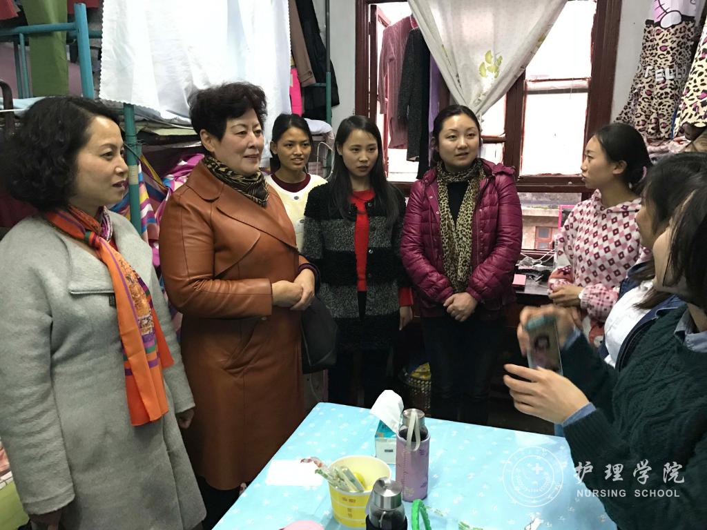 贾秀英询问了员工的学习生活情况,提醒员工注意寝室卫生,保持宿舍空气清新,开窗通风,鼓励同学们积极参加校运会选拔,加强体育锻炼,积极预防疾病发生;杨英叮嘱同学们注意保证好用电安全,以及财物和人身安全。