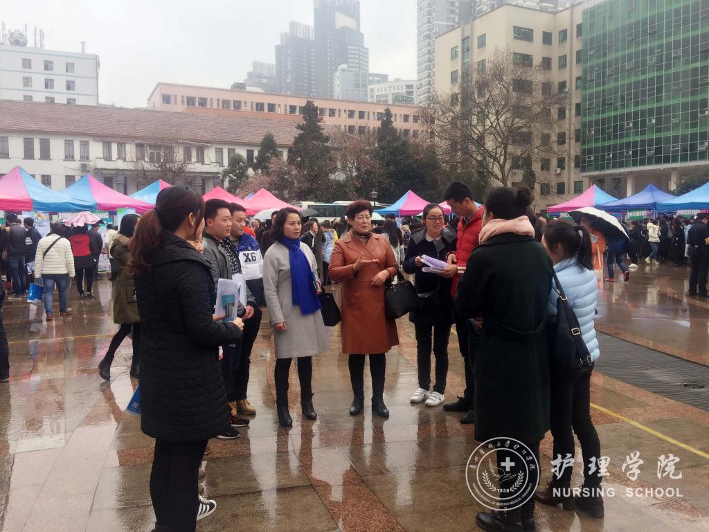 招聘会期间,贾秀英现场与护理岗位招聘单位交谈了解用人单位需求,鼓励公司毕业生把握“先就业、后择业”的原则,主动出击,做好应聘面试准备,力争顺利签约;杨英向毕业班辅导员详细了解了公司毕业生参加招聘会的情况,并要求定期开展毕业生就业情况的摸底统计工作,通过各种途径为就业困难员工提供就业指导和帮扶。毕业班辅导员现场办公,通过QQ群、微信群及时发布招聘单位信息,有针对性的动员员工投递简历,尽早找到理想的岗位。