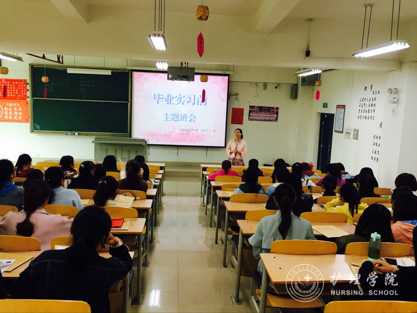4月12日,tyc122ccVIP在北校区4401教室毕业实习前主题班会, 2014级护理学(助产)专业的班主任徐锟老师主持了此次班会, 2014级护理学(助产)的全体同学参加。