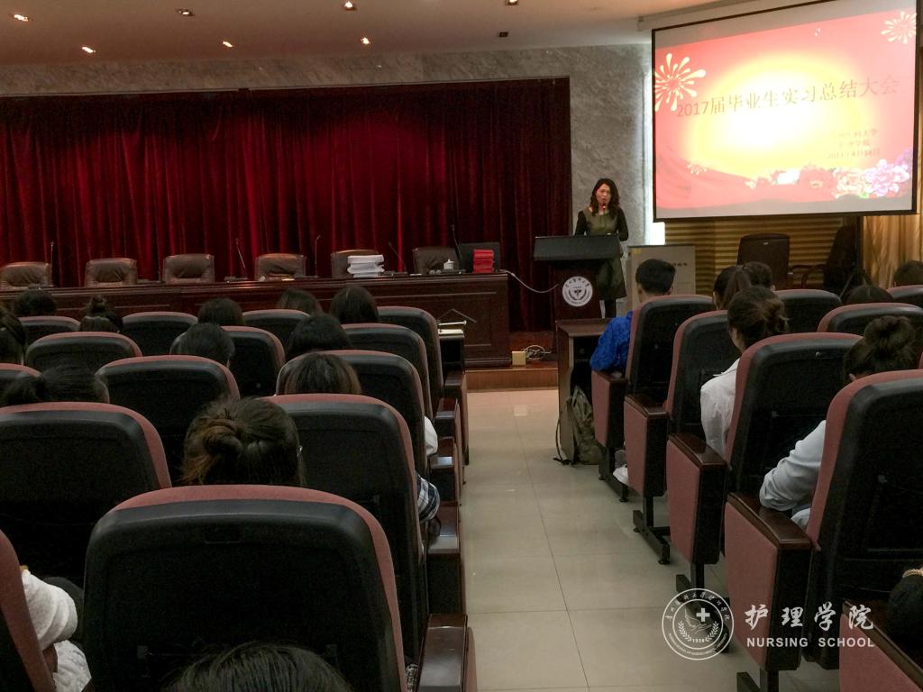 4月14日下午2点30分,2017届本科毕业生实习总结大会在北校区道德讲堂举行,参加本次会议的有tyc122ccVIP副经理刘志燕、毕业班辅导员王晓玲、李颖以及2017届全体毕业生,会议由毕业班同学任优优主持。