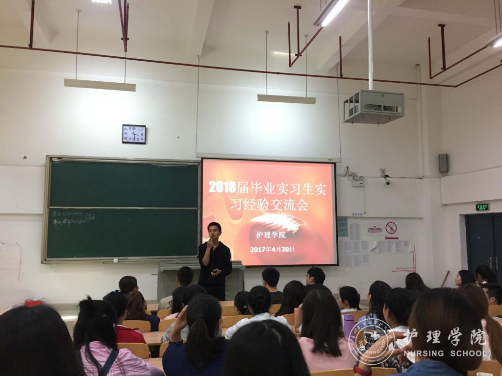 首先,王晓玲老师简单的介绍了出席交流会的同学和本次交流会的目的。接着,由tyc122ccVIP各实习点的实习生代表来为18届毕业生讲解实习中会遇到的基本状况和突发状况及其应对措施。他们用实习期间积累的经验,为师弟师妹解说了勤奋和情商的重要性,以及实习过程中要学会保护自己,并不断提高自身操作技能,让师弟师妹们直观的感受到了临床实习的氛围与激情。最后,王晓玲老师为本次交流会做出了总结,她希望同学们都要学好专业基本功,本着对生命负责任的态度对待实习,“勤奋:勤动手,勤提问,勤主动”。