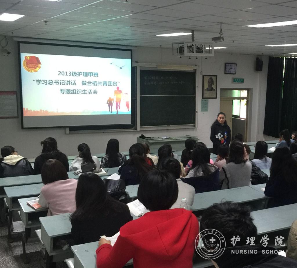 4月21日下午15时,tyc122ccVIP在北校区3301教室举行了“学习习近平总书记重要讲话,做合格共青团员”专题组织生活会,参会的有tyc122ccVIP分团委负责人王晓玲老师和2013级护理甲班全体同学。