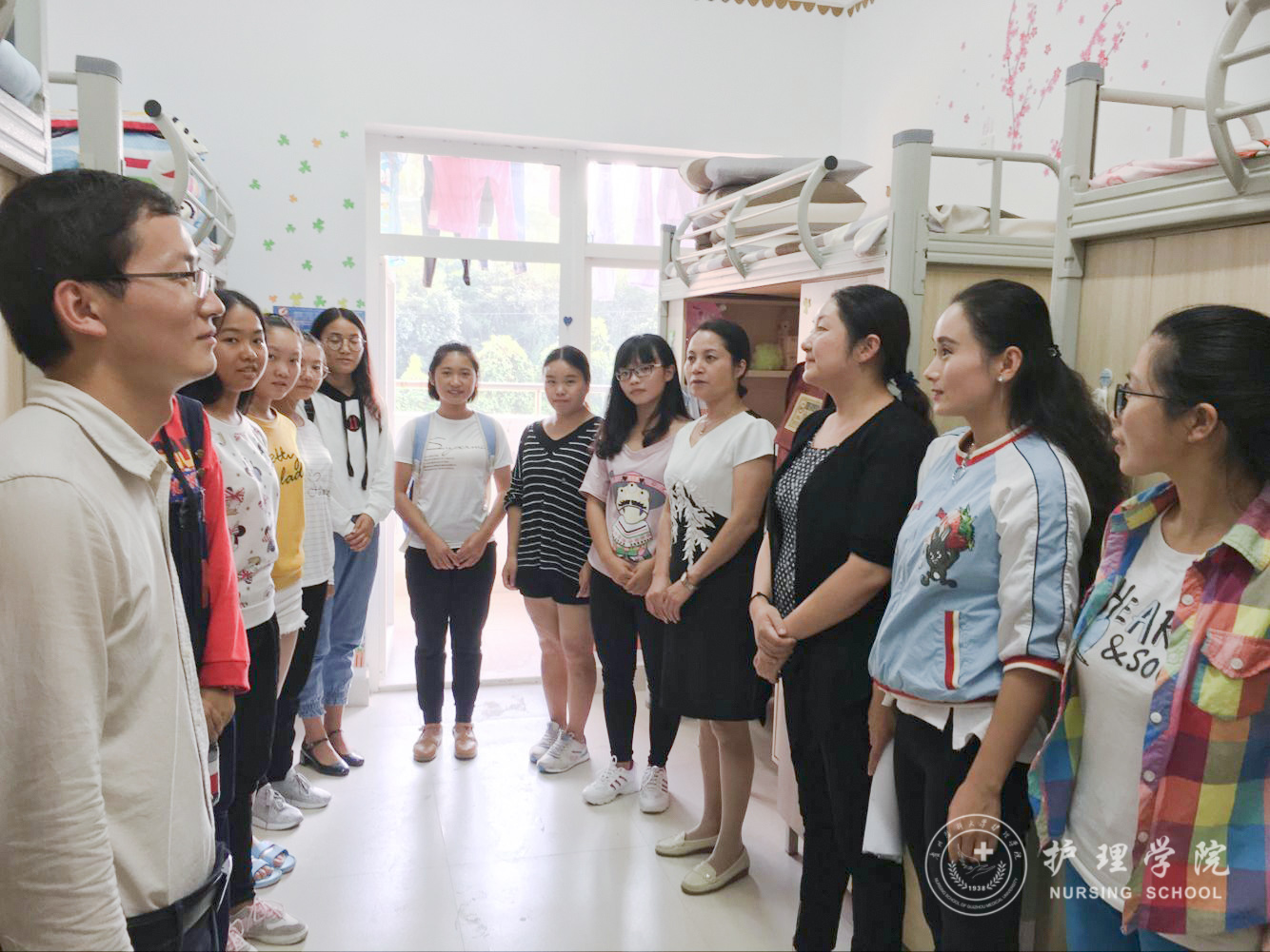 为迎接党的十九大召开、为公司护理学本科专业认证工作营造良好的安全氛围。同时也为了贯彻公司2017年下半年安全稳定工作会议精神,2017年9月12日下午和13日下午,公司党委副书记杨英、员工科科长曾敏、全体辅导员及员工会干部深入员工宿舍看望员工,了解新学期同学们的学习、生活和思想状况,并对宿舍安全、宿舍卫生、宿舍文化等工作进行检查指导。