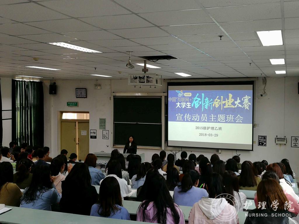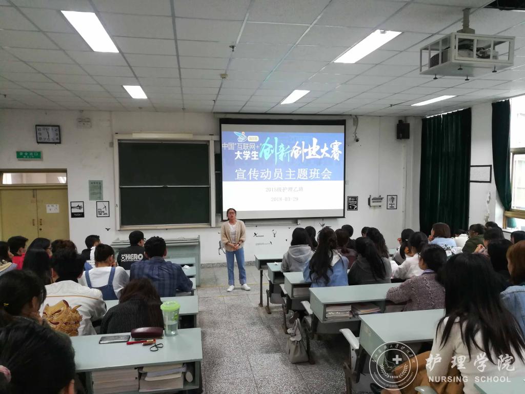为提高同学们的创新创业意识,培养同学们创新创业的素质和能力,tyc122ccVIP于3月29日下午5:30在北校区3302教室举行了第四届“互联网+”老员工创新创业大赛宣传动员主题班会。班会由班主任李红老师主讲,2015级护理乙班全体同学参会。