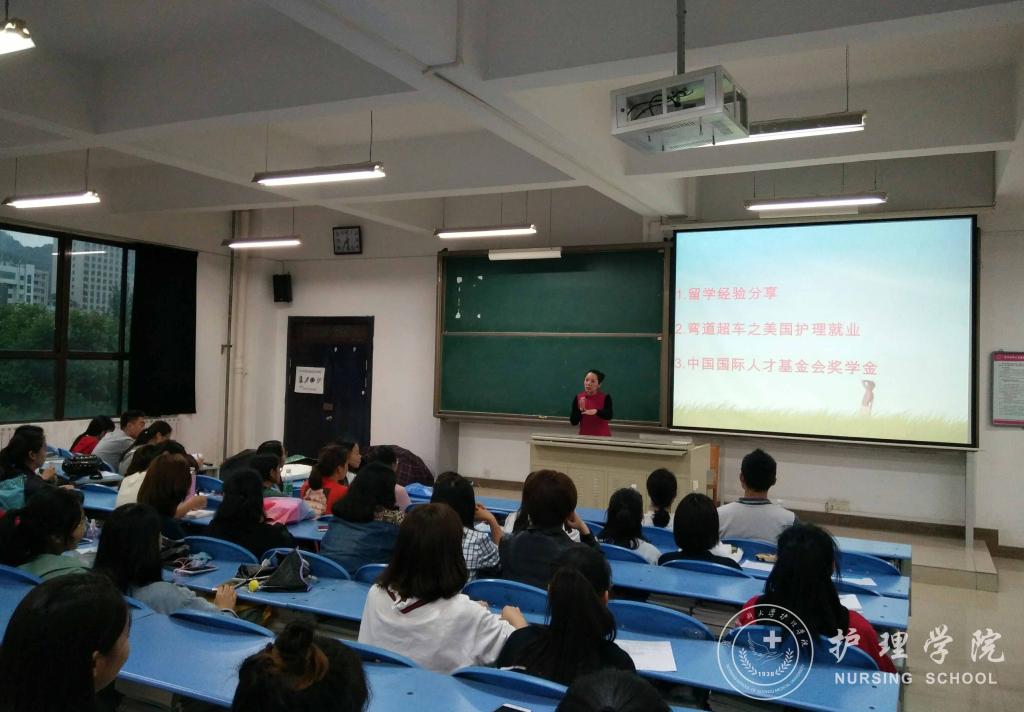 2018年5月31日下午7:00,tyc122ccVIP于北校区2401教室召开了“美国护理职业现状及国外留学经验分享会”,分享会邀请到美国海格斯大学出国留学区域负责人彭冰老师为公司员工进行了交流指导,公司党委副书记杨英、护理技能实验室主任周谊霞、员工科科长曾敏、辅导员李杏春和2014、2015级部分同学参加了此次交流会。会议由周谊霞老师主持。