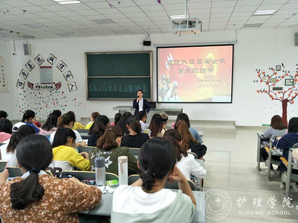 为增强老员工参军报国的意识,鼓励老员工积极应征入伍及维护校园的安全稳定,6月12日下午,tyc122ccVIP在南校区7404、7406教室开展了老员工应征入伍暨安全教育主题班会。此次班会由辅导员马景瑶老师主持,2017级护理学甲班、乙班全体同学参加。