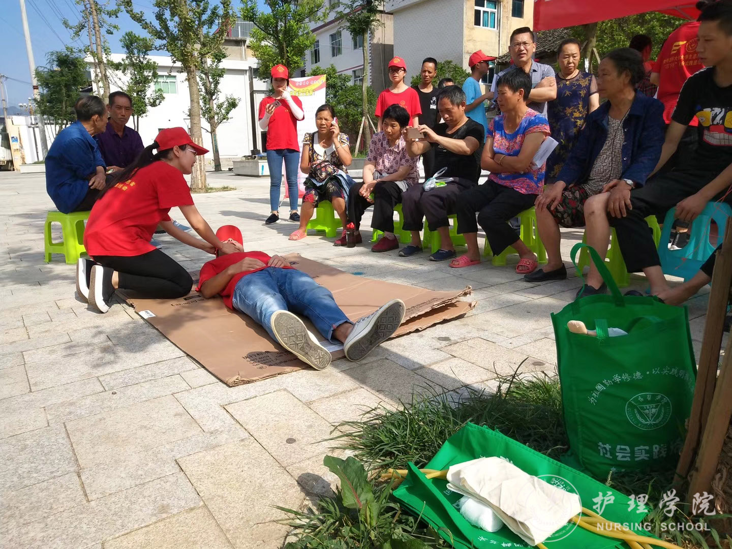 活动第二天上午9点,服务队到达贵定县昌明镇,分组开展了“禁毒靠大家,利民利国家”禁毒知识宣讲、禁毒知识问卷调查、“点点爱心暖人心,滴滴关怀递温情”慰问革命老前辈、发放常见病防治宣传单、常见病防治咨询、发放常用药品、为群众测量血压、预防艾滋病宣讲、红十字急救培训九项服务的同时,服务队还前往昌明镇文江村,采访了贵定县委政法委副书记曹刚、贵定县综合办副主任董晓军和贵定县禁毒办工作人员钱伟,主讲人钱伟同志结合实际情况对同学们提出的问题做了一一解答,并嘱托当代青少年谨慎交友,加强自身的防范意识。