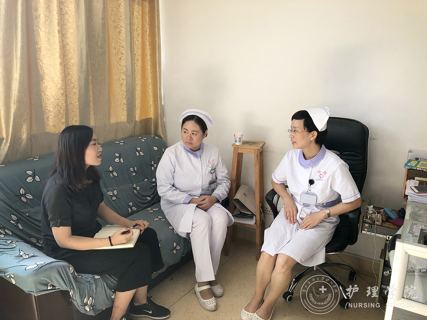 在两家医院护理临床教学组老师的指引下,具体走访了肝胆外科、母婴病房、心血管内科等临床科室,与走访科室的护士长、带教老师、实习同学深入交谈,从不同层次了解实习教学、员工管理以及专业操作中存在的问题。通过了解,两家实习医院对公司实习员工的表现评价较好,同时也指出希望实习员工在沟通交往能力、动手操作能力等方面,能随着实习时间的推进,进一步强化的希望。
