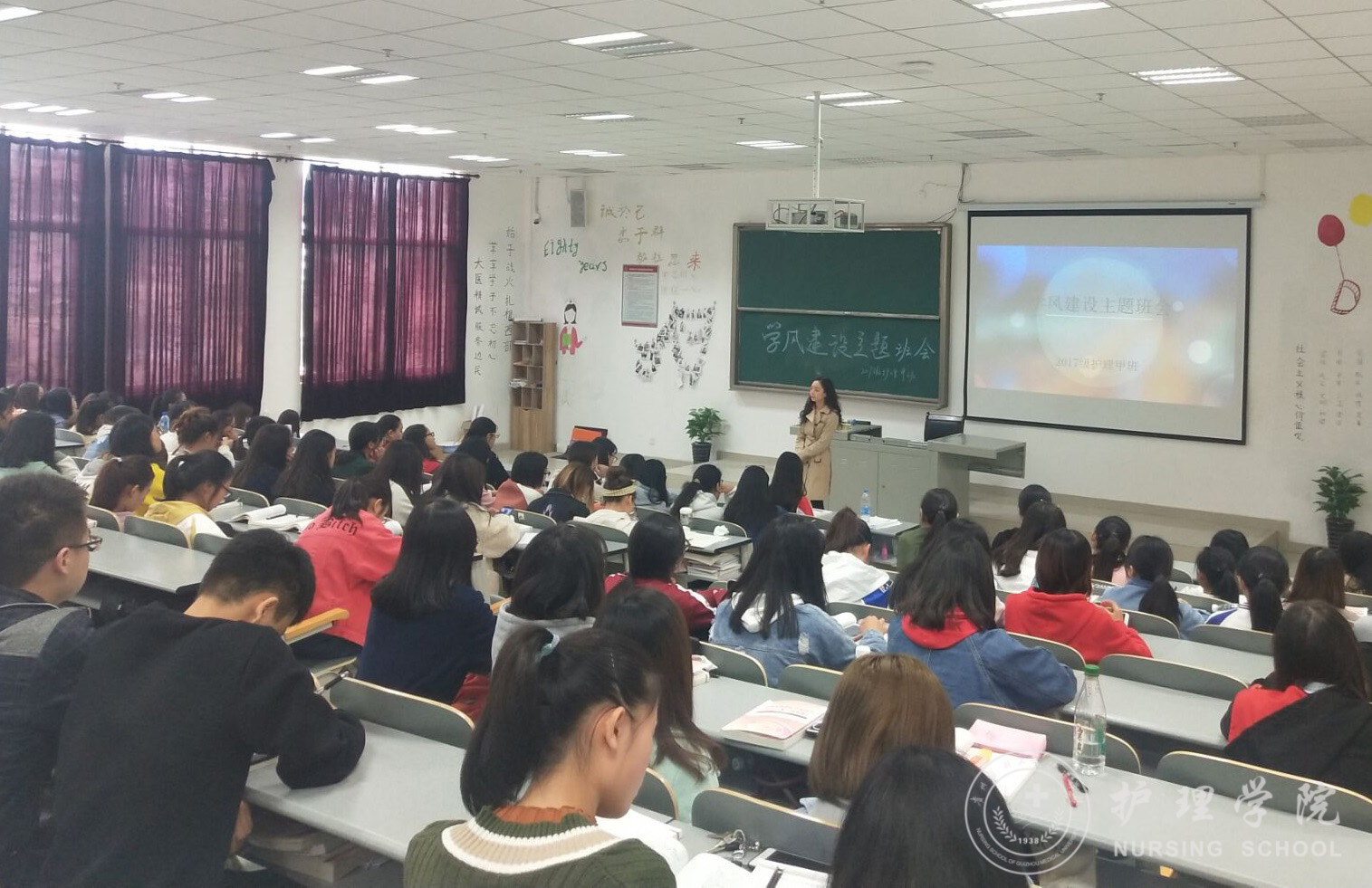 为了激发同学们的学习热情,增强同学们求知的自主能动性,营造良好的学习氛围,10月9日2017级甲、乙两班在7406、7404教室召开了新学期“学风建设”主题班会,此次班会由班主任吴俊、王丽主持。