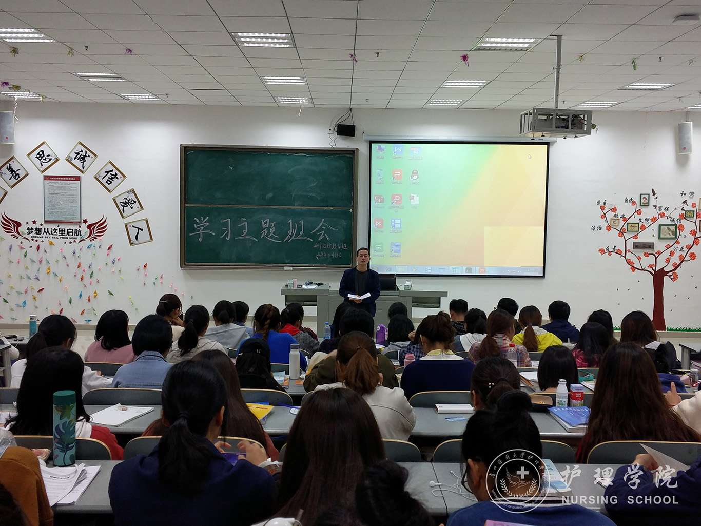 为了激励同学们勤奋学习,增强同学们的自主学习意识,营造良好的班风学风,10月31日晚上,tyc122ccVIP在南校区7404、7406教室召开新学期学习主题班会。本次班会由2017级辅导员马景瑶老师主持,2017级护理学甲班、乙班全体同学参加。