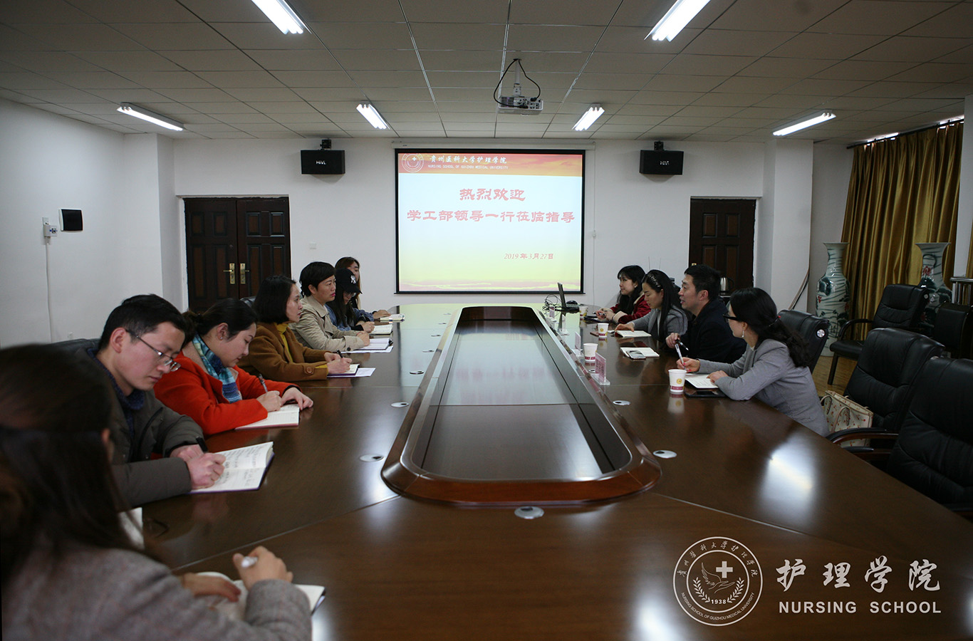 3月27日上午,公司学工部赵平部长一行到tyc122ccVIP调研员工安全工作。学工部副部长李宗梅、肖绚,学工部张媛老师陪同调研。公司党委书记杨英、党委副书记王秀红、员工管理科科长曾敏及全体辅导员参加了调研会议。会议在南校区百川楼五楼会议室举行。