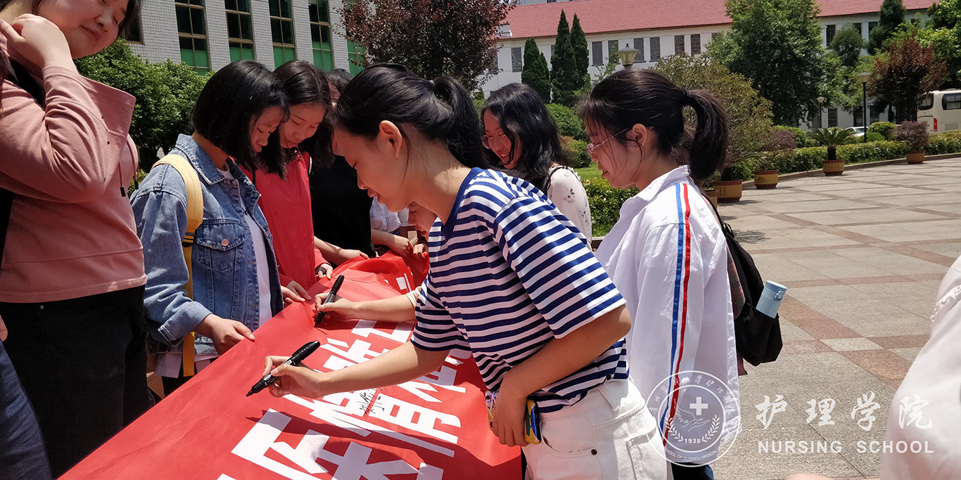 活动得到大家的积极响应,过往的同学纷纷驻足,在“四载贵医情难忘,风劲帆满志远航”的横幅上签下自己的名字。签名之余,大家还写下了美好的祝福。同时,毕业班党员代表们向周围的同学发出文明离校倡议书。在倡议书中建议毕业生们再组织一次班会,在全班同学面前认认真真地再讲一次话;再去拜访一回最尊敬的老师,认真地记住一条她给你的人生建议;再认真的打扫一遍教室和宿舍,给学弟学妹留下整洁的环境;再漫步一次校园,和那些走过无数遍的路认真的告别一次。