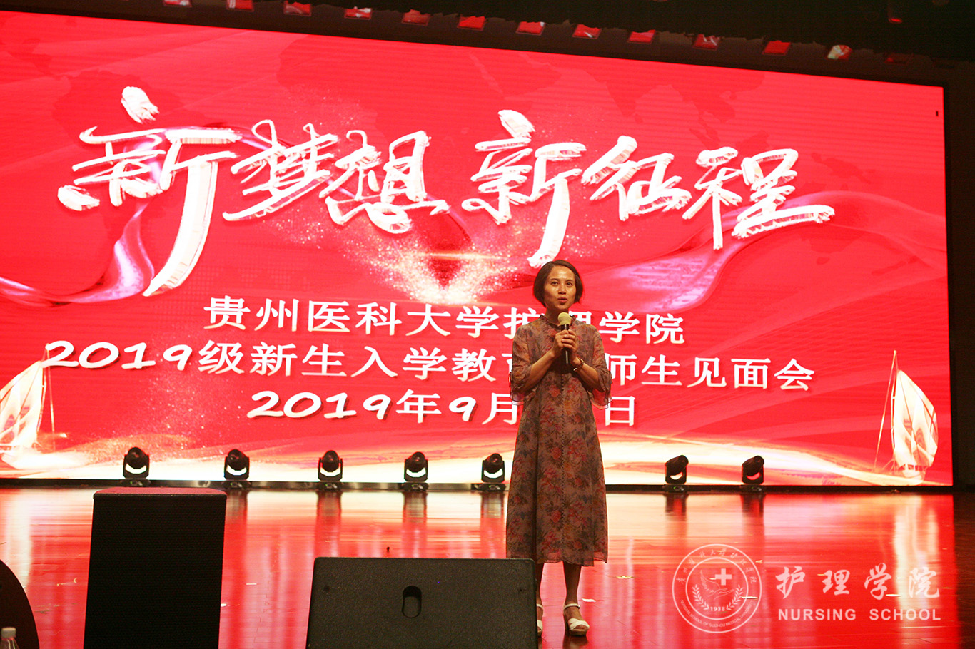 刘志燕和2019级新生分享了关于护理学的专业知识,从护理学的内涵,护理学的专业培养目标、能力要求、知识要求等方面对新生进行专业思想教育,使新生对护理学专业有了基本的了解,对大学四年的专业学习有了初步的认知与规划。而后,2019级护理学甲班同学熊思洋作为新生代表发言,表达了对专业学习的追求、对老员工活的期盼。
