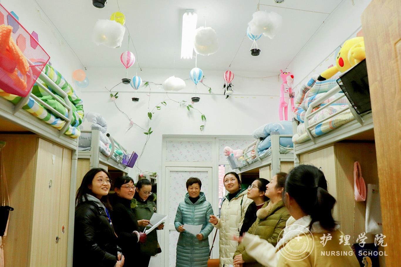 经过初赛的选拔,共有43间寝室进入了决赛环节。评委们对寝室的装饰、卫生和安全用电等方面进行了综合考察,讲解员们向评委们讲述着自己独特装饰风格和意义所在,可以感受到同学们对寝室的装饰十分用心。有积极向上的绿色环保风格、健康活泼的运动风格、简约大方的书画风格、特色鲜明的传统剪纸风格,更有“诚于己,忠于群,敬往思来”的笔墨装饰,增添了一份贵医人的文化内涵。王秀红还亲切询问了同学们的学习、生活情况,表扬了同学们温馨又有创意的寝室风格,指出部分寝室装饰存在的安全隐患,希望同学们注意寝室安全,也希望同学们在老员工活中要有明确的目标,砥砺前行,同时珍惜同学间的感情,和睦相处。最后,经过综合评选,共评选出一等奖2名,二等奖4名,三等奖6名,优秀奖3名。