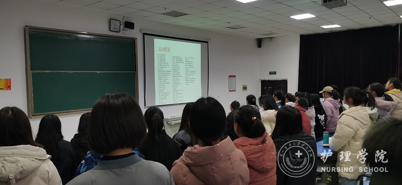 为弘扬12.9精神,12月9日,助产学2019级在南校区广德楼1602教室召开纪念12.9青春激扬主题班会。本次班会由辅导员曾敏组织,宣传委员方倩主持,助产学2019级全体同学参加。