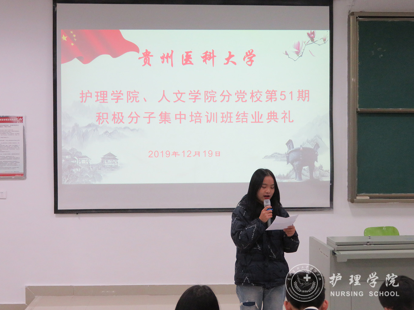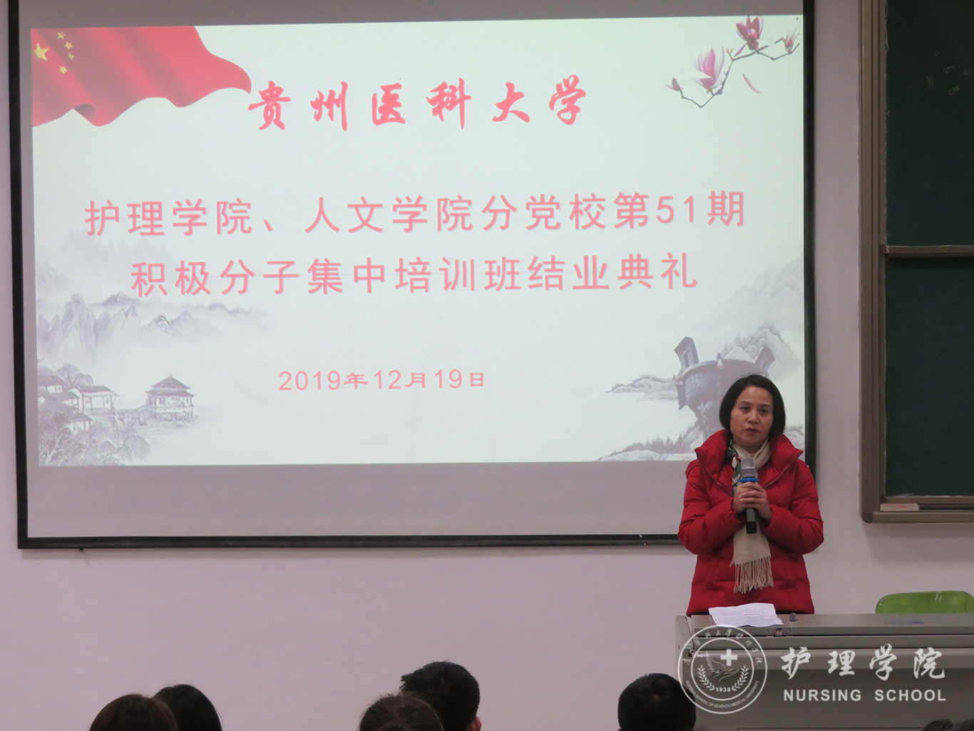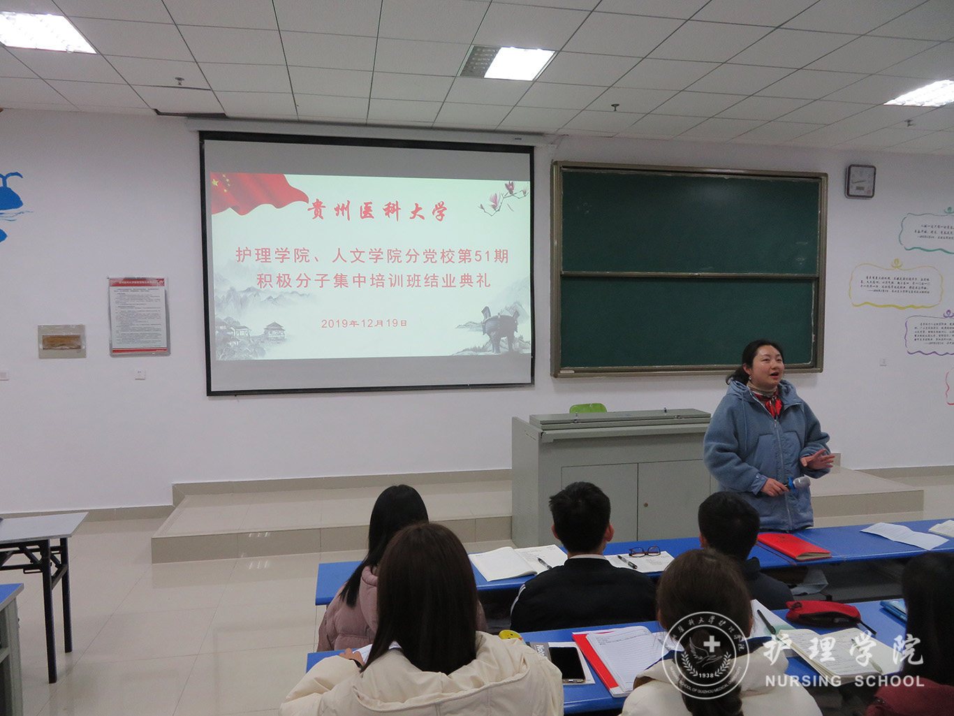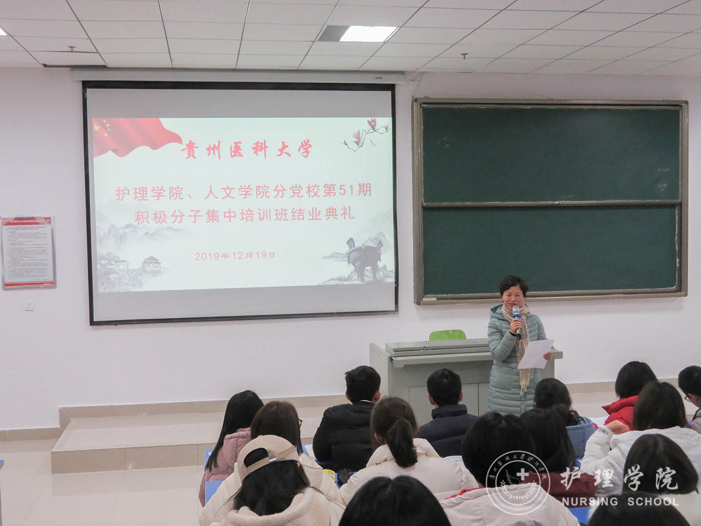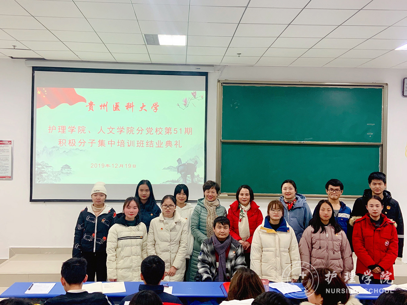 12月19日,tyc122ccVIP、医学人文公司分党校第51期入党积极分子集中培训班结业典礼在南校区广德楼1301教室举行。公司党委书记杨英、副书记王秀红、本期培训班班主任曾敏及全体学员参加了典礼,典礼由王秀红主持。