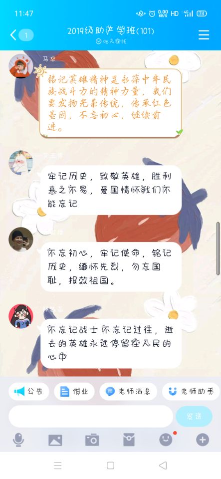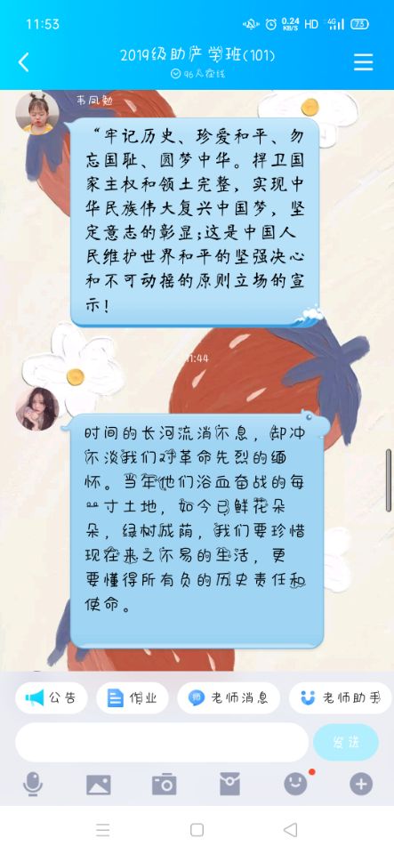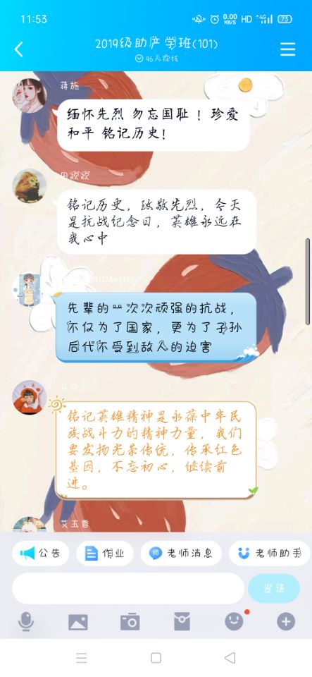 9月3日,是中国人民抗日战争胜利纪念日,也是世界反法西斯战争胜利纪念日,为纪念中国人民抗日战争胜利,9月3日tyc122ccVIP助产学2019级在广德楼1602教室召开了“铭记历史 缅怀先烈——纪念抗日战争胜利75周年”主题班会。班会由辅导员曾敏组织,团支部书记欧阳孝玲主持,助产学2019级全体同学参加。