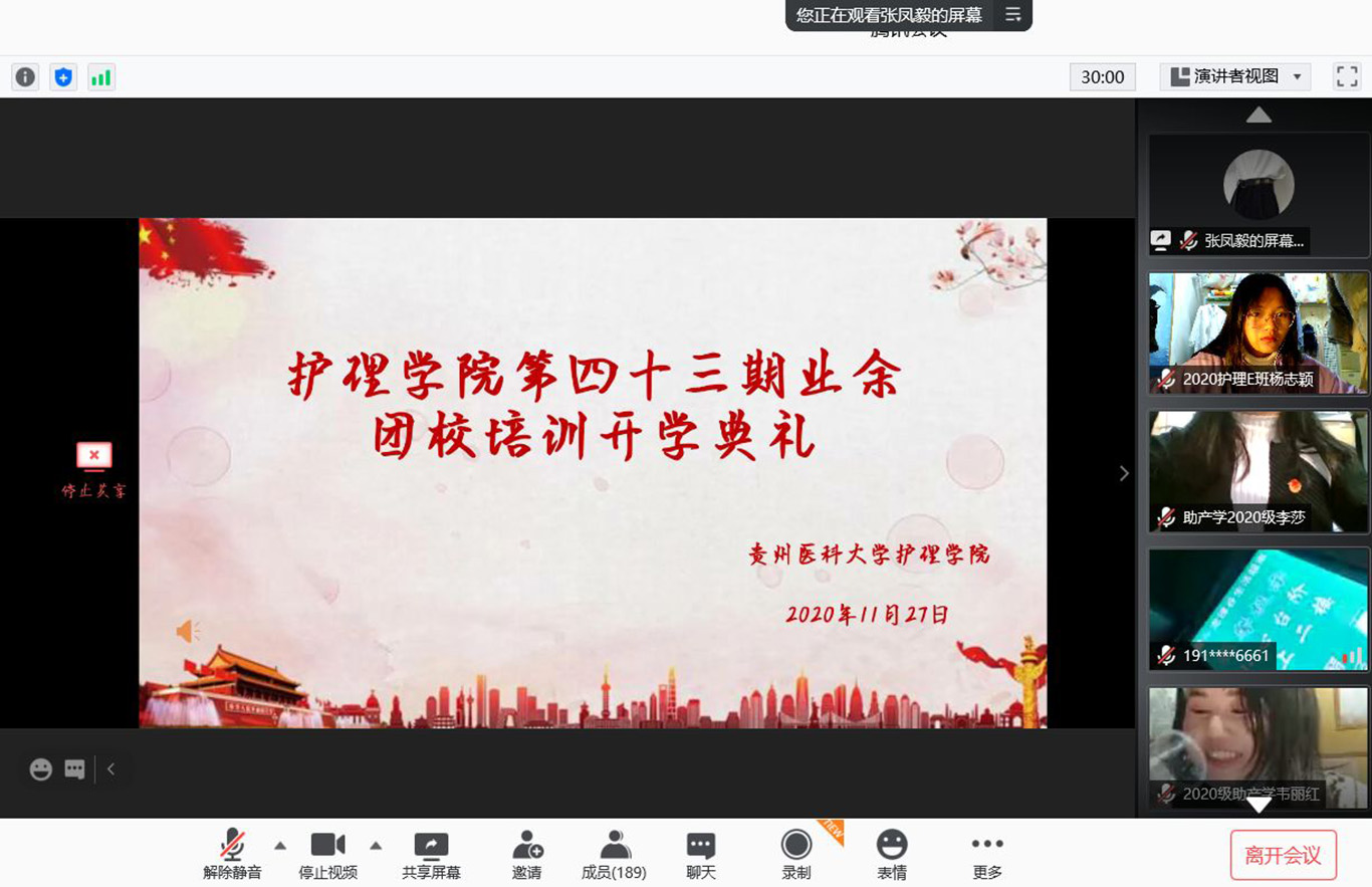 11月27日,为深入贯彻习近平新时代中国特色社会主义思想和党的十九大、团的十八大精神,加强对青年团员的思想政治引领和价值引领,tyc122ccVIP举办第四十三期业余团校开班典礼,tyc122ccVIP团委副书记王晓玲、2020级辅导员兼第43期团校培训班主任刘妍、tyc122ccVIP第四十三期团课培训班全体成员参加了此次开班典礼,开班典礼由2020级C班团支部书记石宇卉同学主持。