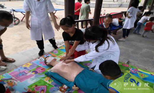 入村后,他们利用带去的仿真模型,召集村里的孩子和家长现场示范并讲解心肺复苏、海姆立克急救等相关知识。同时,在详细的培训之后,小分队姑娘们给村民们分发了口罩、体温计、学习文具、板蓝根等物资,和他们在一起做游戏、宣讲医护人员抗击新冠肺炎疫情的感人事迹。在离村之前,他们结合对老年人健康检查和咨询的情况,对村里的部分老人进行走访和调研。及时的为老人们答疑解惑、解决部分问题。