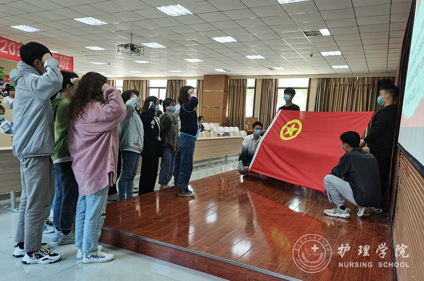4月29日,为落实共青团中央组织开展的“学党史、强信念、跟党走”主题团日活动,tyc122ccVIP团委于南校区百川楼1101教室隆重举行了入团仪式。参加会议的有14名新团员、2019级—2020级各班入党积极分子代表、团员代表参会,员工第三党支部书记刘妍老师出席会议,会议由团学办副主任张凤毅同学主持。