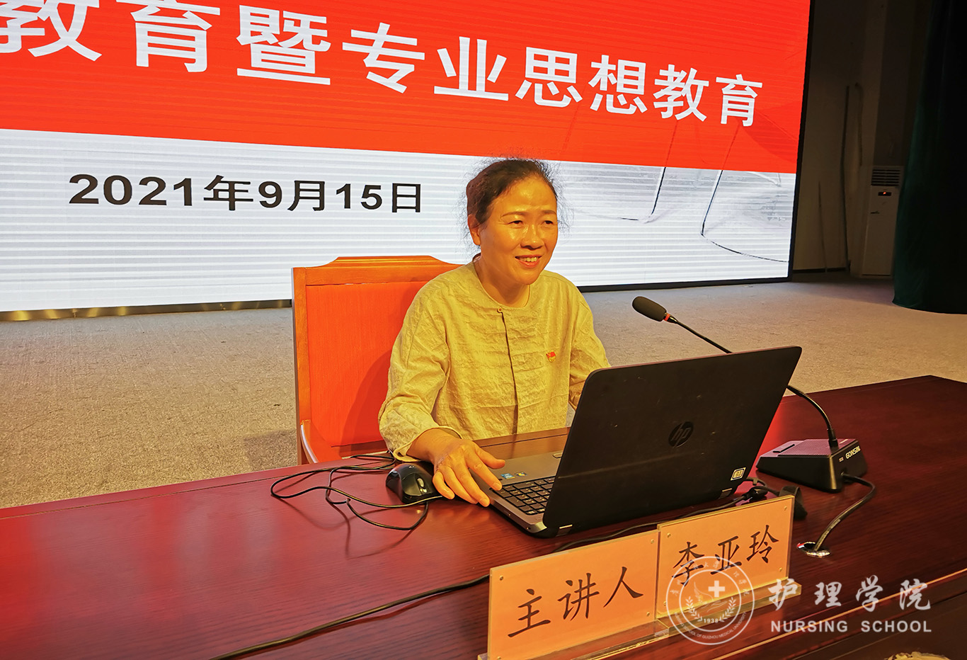 接下来,李亚玲对新生进行专业思想教育,从公司历史沿革、团队建设、课程设置三方面为在座同学介绍了tyc122ccVIP的发展背景及专业前景,她希望同学们踏进校园的那一刻起就要立鸿鹄之志,志存高远,做一个既有思想深度又有视野广度,既有社会责任感,又有家国情怀和使命担当的贵医护理人。
