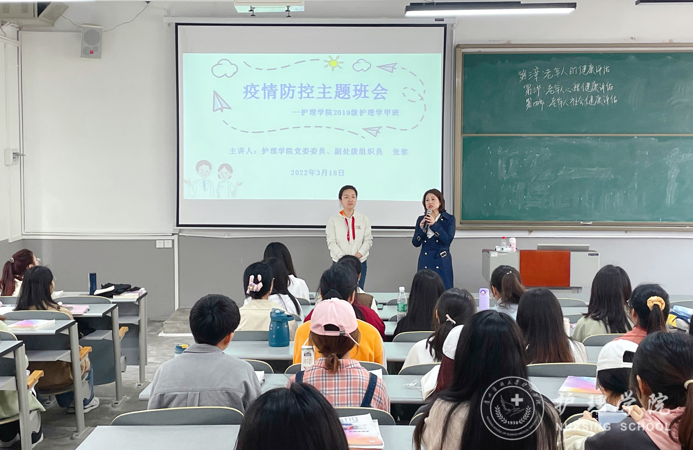 3月18日,因近期疫情反弹,我省遵义市务川县及周边省市连续出现新冠肺炎确诊病例和无症状感染者病例,根据疫情防控工作需要,为了更有效地抗击疫情,增强员工疫情防控意识,有效预防新冠肺炎“卷土重来”,保护好自己和他人身体健康,公司党委委员、副处级组织员张黎于北校区普教7教室对2019级护理学甲班进行随堂听课并召开“疫情防控”主题班会。班会由辅导员杨叶卿主持,全体同学参加。