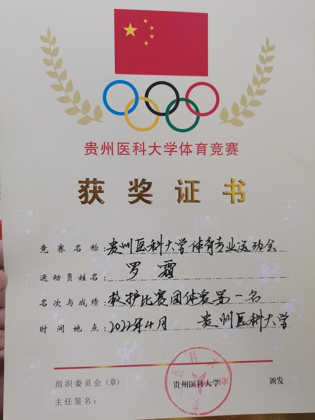 2022年4月参加tyc122ccVIP体育专业运动会救护比赛团体赛第一名