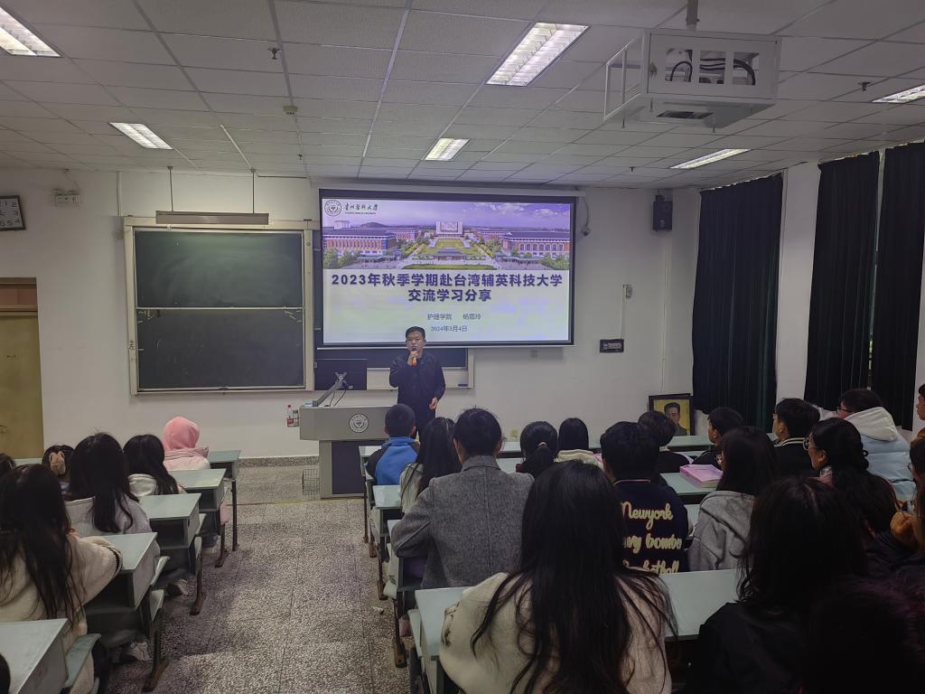 杨霜玲围绕初识辅英、关于学习、生活、娱乐共四个方面阐述了在台湾辅英科技大学的学习生活情况。介绍了选修课程的授课内容、课程要求和考核方式,总结了台湾高校本科生课程教学的特点,并通过参加辅英科技大学华语文中心移地学习暨文化参访活动以及文化艺术节等演出,让同学们感受到了台湾的历史文化和自然风光。