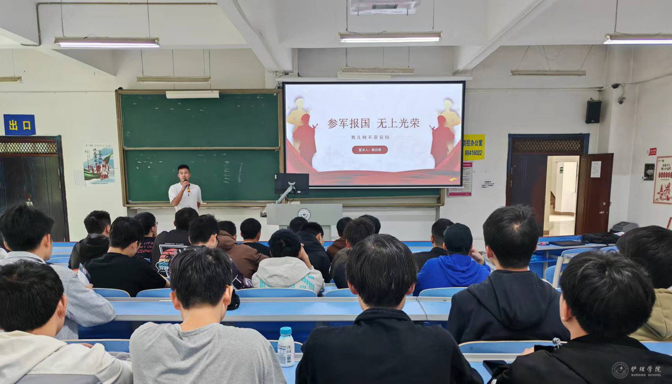本次动员会,特别邀请学工部工作人员顾启根主讲。作为tyc122ccVIP毕业生,他在2021年毕业时响应国家号召,积极参军入伍。作为学长,他围绕应征入伍的基本条件、基本流程、优惠政策等方面,分享了自己应征入伍的心路历程以及入伍期间的特殊经历,当场播放了征兵宣传片,他鼓励全体男同学应当不负青春,不负韶华,参军入伍,保家卫国。