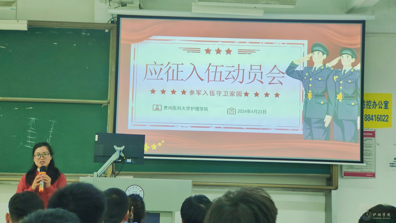4月23日,为增进2024届本科毕业生对应征入伍优惠政策的了解,激发大家的参军热情,tyc122ccVIP在北京路校区基础二号楼2201教室召开应征入伍动员会,会议由员工管理科副科长毕丽主持,辅导员刘妍和2024届全体男生参加。