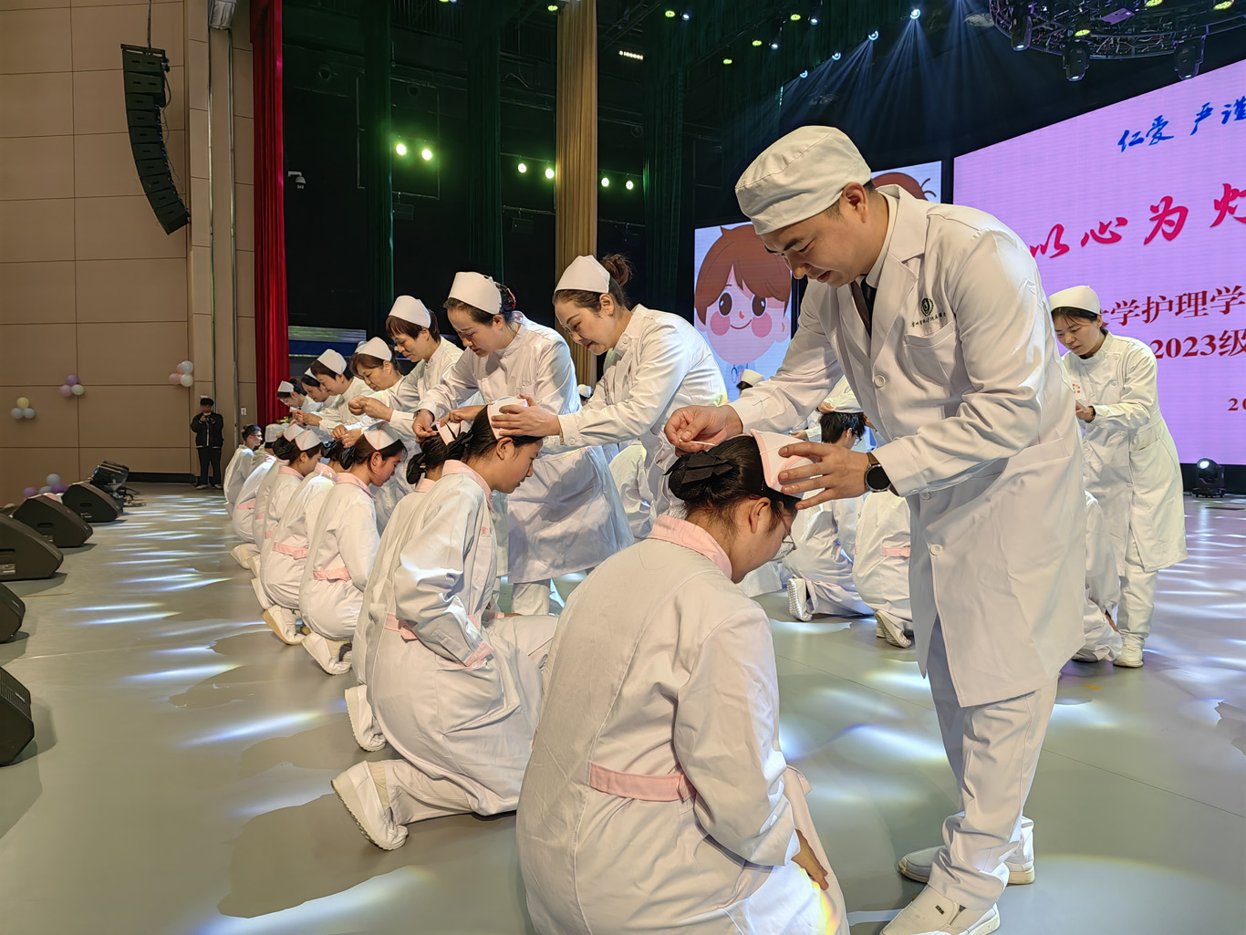 5月8日,在第113个5·12国际护士节到来之际,为弘扬救死扶伤和无私奉献的精神,培养护理学子的职业道德和理想信念,丰富校园文化生活,tyc122ccVIP在云漫湖校区礼堂举办了以“以心为灯,逐梦青春”为主题的2023级护生授帽仪式,由28位优秀护理前辈为678名护生授帽传烛。公司领导班子、全院教职工及2022级、2023级员工参加本次授帽仪式,仪式由副经理王秀红主持。