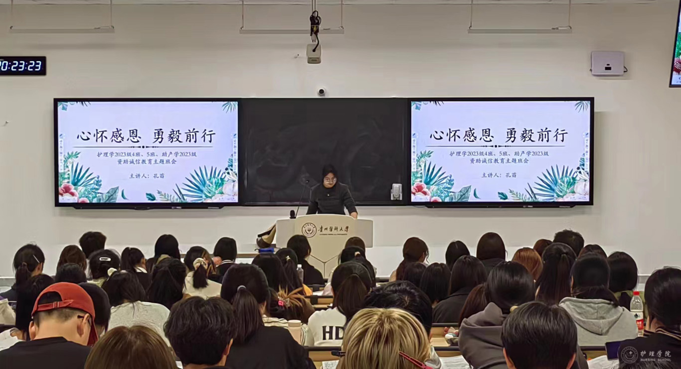 各辅导员强调,国泰才能民安,只有国家强大了才能为人民提供强大的资助,而国家的强大是来自于先辈们的努力和奉献,因此,受资助的同学们要心怀感恩,珍惜这来之不易的资助,将其化为勇毅前行的力量。同时强调,诚信是立身之本,人无诚则无立,所以同学们要保持诚信,珍惜自己的征信,不做“无信”之人。最后鼓励同学们发挥医员工的自觉性,从自我做起,扎实专业学习,树立正确的价值观和消费观,在实际行动中践行感恩承诺。