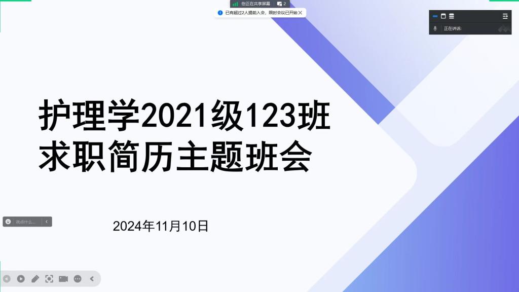 11月10日,为进一步提升同学们的就业能力,引导同学们提前了解社会对人才培养的需求,tyc122ccVIP开展了2025届本科毕业生求职简历制作指导主题班会,班会由本科毕业班辅导员兰光倩、刘文壮主持,此次班会通过腾讯会议的方式进行。