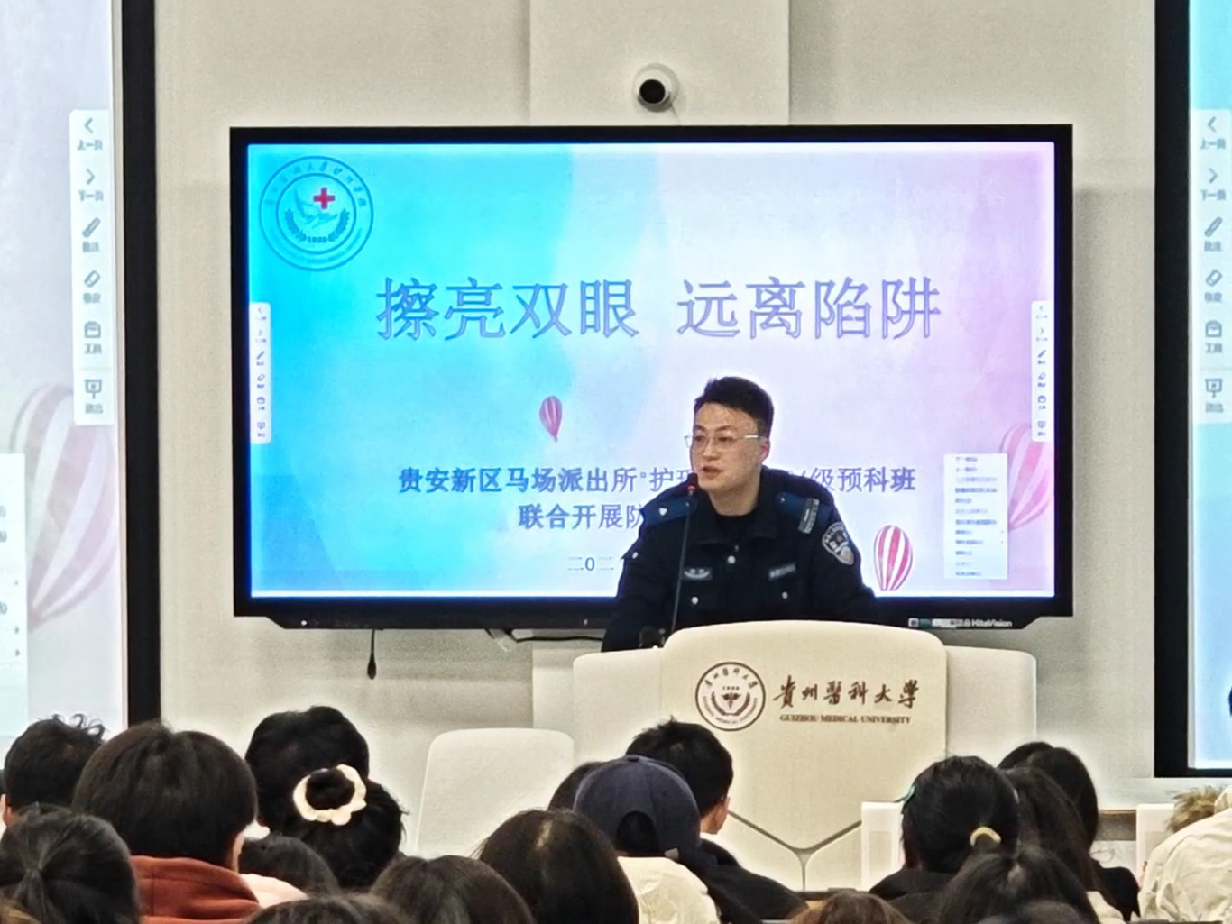 3月20日,为进一步增强少数民族预科班员工防范网络诈骗意识,切实保障个人财产安全。2024级少数民族预科班联合贵安新区马场派出所,在云漫湖校区临床组团M201教室组织开展了“擦亮双眼,远离陷阱”主题反诈宣传教育活动。本次活动由tyc122ccVIP辅导员袁明主持,保卫处老师刘勇康,贵安新区马场派出所警官汤思恒,2024级预科班全体同学参加。