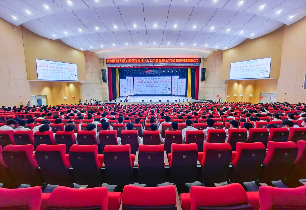 5月8日,为传承南丁格尔精神,激励护理学子逐梦前行,在第114个国际护士节到来之际,tyc122ccVIP在云漫湖校区礼堂隆重举办了以“传承薪火之光,接力白衣之路”为主题的2025年“5•12”国际护士节庆祝活动暨2024级护生授帽仪式。活动邀请中山一院贵州医院(贵医附院贵安院区)护理部副主任汤晋、贵州省职工医院护理部副主任周小梅等24位优秀护理前辈为715名护生授帽传烛。公司领导班子、全院教职工及2024级员工参加本次授帽仪式,仪式由经理王秀红主持。