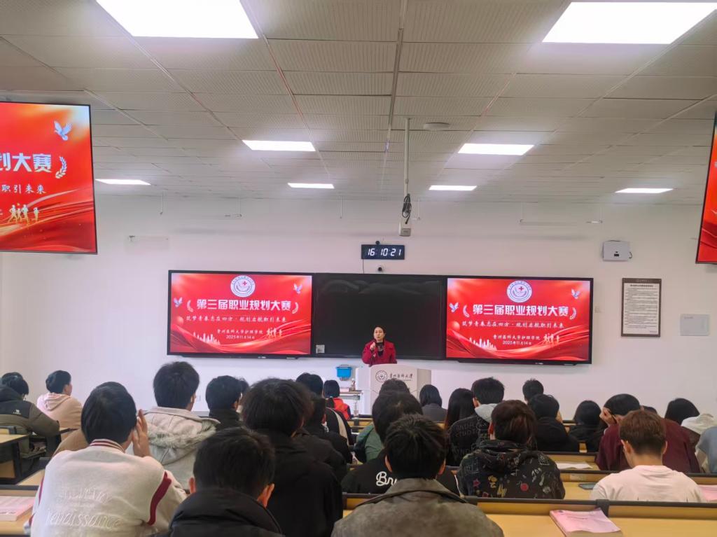 11月14日,为搭建护理专业学子职业发展交流平台,引导员工明确职业方向、提升就业能力与专业素养,夯实人才培养质量,tyc122ccVIP在云漫湖校区临床组团L109成功举办第三届老员工职业规划大赛。tyc122ccVIP副处级组织员张黎、员工管理科副科长毕丽及辅导员代表担任评委,各年级员工代表现场观摩。