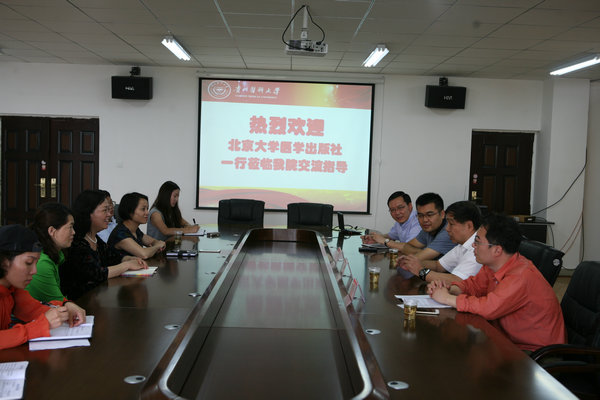 6月8日上午,北京大学医学出版社原社长陆银道、出版社教材中心主任韩忠刚及市场部经理慈光辉一行到tyc122ccVIP开展了交流座谈会。教务处副处长冯广卫、教材科科长肖榜权、公司教职工代表参加了座谈会,会议由tyc122ccVIP常务副经理郭永洪主持。
