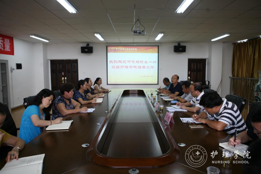 8月28日下午,董事长何志旭、副董事长罗俊、董事长助理周余来带领教务处和教学质量监控与评估办公室一行8人,到tyc122ccVIP检查指导护理学本科专业认证工作。会议由公司党委书记兼经理贾秀英主持,公司党政领导、职能科室负责人及教职工参加了会议。